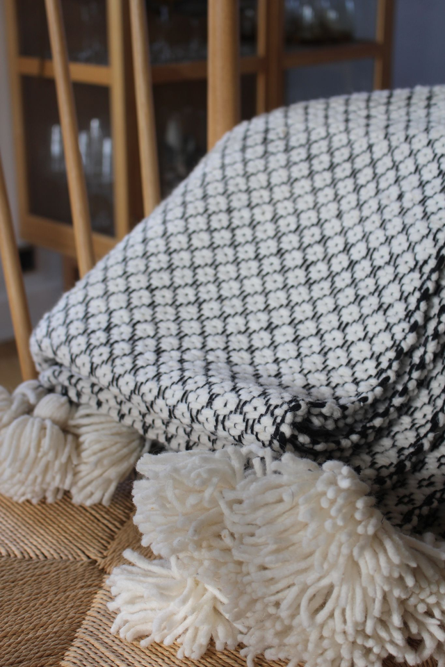 Lækker sengeløber i 100% uld. Sort/hvid med kvaster
